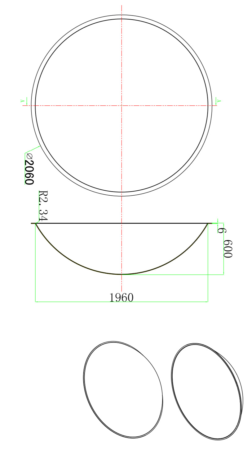 For sizing convenience, our window is available in various dimensions, with a 7-foot diameter window serving as an example. Actual dimensions are 2060mm in diameter by 600mm in depth, providing ample space and an expansive view.